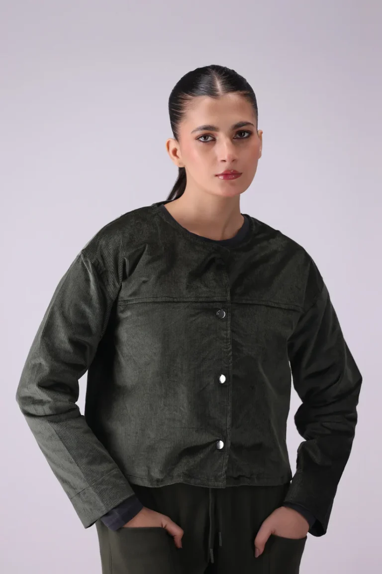 Corduroy Round Neck Button Down Jacket
